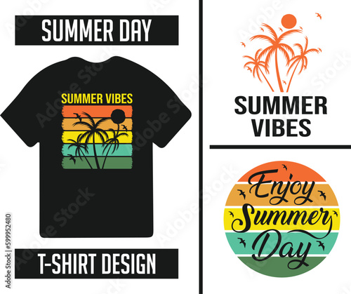 Summer t shirt design, summer vibes t-shirt design, summer day typography t-shirt design, Sunny day t-shirt, Summer vibes vector.