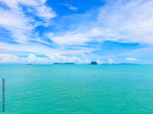 Summer travel, sea in Asia, the holiday season, which gives natural relaxing feeling. Beautiful natural environment and rest. Travel Thailand, the island in the middle of sea sky clouds Samui Thailand