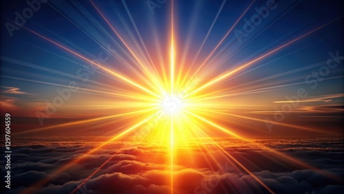 Sun flare shines on dark sky background, warm sunlight, sunny flare