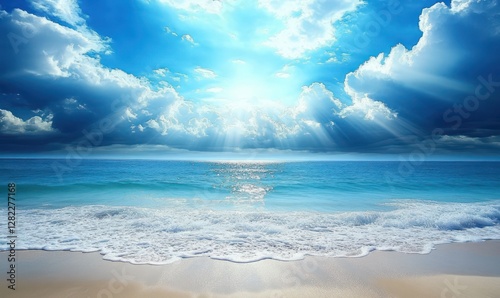 ocean, beach, sun, ray, wave, sea, sky, calm, sand, peaceful, travel, tour tourism, vacation, holiday, summer, nature, landscape, blue, water, coast, shore, sunlight, sunshine, serenity, calmness, paradise, tropical, beauty, relax, get-away, escape, freedom, joyful, inspirational, picturesque, scenic, vibrant, bright, stunning, amazing, marvellously, marvellous, breathtaking