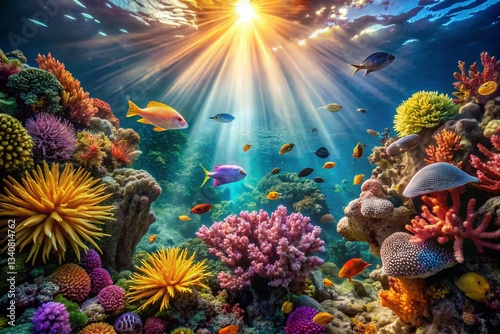 coral reef, underwater, sunbeam, ocean, marine life, fish, coral, vibrant, underwater photography, sea, nature, wildlife, ocean life, aquatic, reef, tropical, colourful, sunlight, light, shadow, ocean life, photo, photo, image, marin, natural, beautiful, ecosystem, diving, snorkeling, tropical fish, ocean floor, bright, high-coloured, clear, water, blue, green, yellow, orange, red, purple