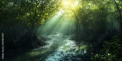 mangrove, forest, light, sunbeam, water, canopy, tree, river, nature, green, jungle, peaceful, serenity, wilderness, root, wetland, tropical, foliage, ecosystem, sunlight, calmness, calm, untouched, natural, growth, branch, shade, lush, moist, stream, flow, vegetation, ambient, morning, habitat, pristine, stillness, wetland, eco, conservation, climate, shadow, leaf, environment, cool, vibrant