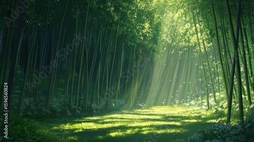 forest, bamboo, sun, sunlight, light, beam, ray, path, green, nature, tree, wood, plant, leaf, summer, spring, tranquil, serene, peaceful, calm, quiet, mystical, magical, idylli, scenic, landscape, background, environment, ecology, vibrant, lush, foliage, shadow, dappled, bright, beauty, view, journey, way, road