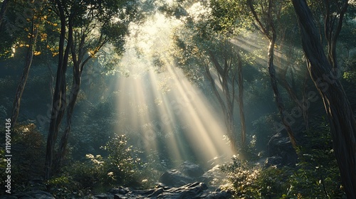sun, beam, ray, light, forest, path, tree, wood, nature, mystical, magical, tranquil, serene, peaceful, calm, quiet, morning, sunlight, fog, mist, haze, green, leaf, branch, shadow, landscape, scenery, background, environment, ecology, wilderness, summer, autumn, spring, vibrant, lush, dark, moody, aethereal, dreamy, enchanting, wonder, mystery, adventure, exploration, journey, travel