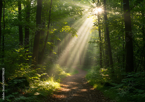 Sunbeams Illuminating Forest Path