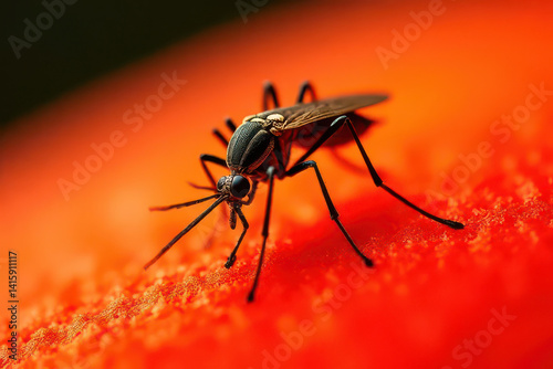 Sunburned Skin Close-Up: Vivid Red Texture, High-Detail Mosquito Macro Shot, Abstract Scientific Visual