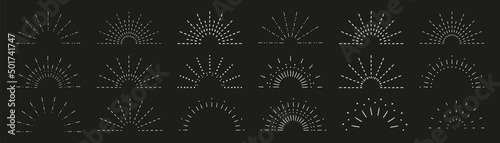 Sunburst set. Vintage sunrise collection. Vector light rays elements on black background. Vector Illustration