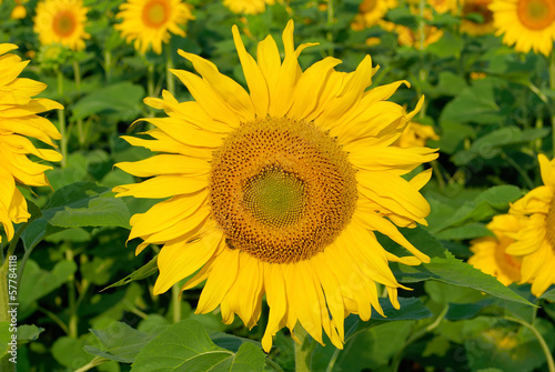 sunflower, yellow, flower, leaf, sun, oil, seed, green, field, agriculture, stem