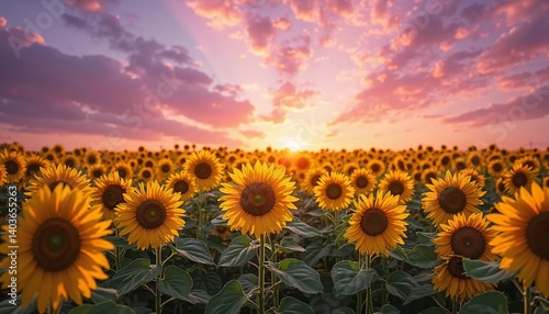 sunflower field at sunset