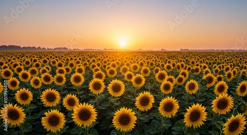 Sunflower field sunrise landscape yellow flowers summer nature agriculture rural scenery scenic horizon view