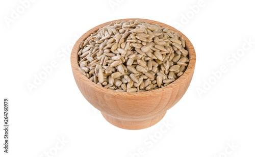 sunflower seed in wooden bowl isolated on white background. nutrition. food ingredient.