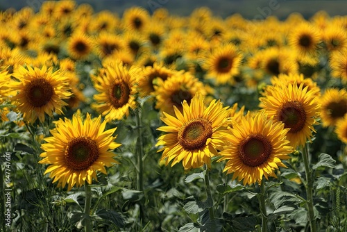 sunflower, field, flower, blooming, yellow, summer, bright, nature, garden, agriculture, plant, vibrant, gold, flower petals, blossom, daylight, landscape, growth, rural, crop, sunshine, beauty, organic, flora, closeup, detailed, green, foliage, stem, sunny, farm, natural