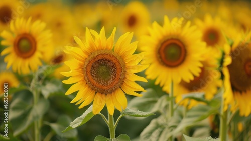 sunflower, yellow, summer, flower, agriculture, travel, season, leaf, spring, beauty, round, bright, floral, nature, texture, orange, pattern, garden, colourful, organic, gardening, botany, bloom, flora, floristry, stamen, detail, pretty, field, background, sun, landscape, gold, sky, plant, green, colours, growth, crowd, sunshine