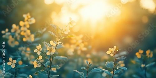 Sunlight bathes blooming flowers in a vibrant garden during the golden hour of a warm evening