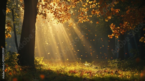 Sunlight Filtering Through Autumn Leaves in a Forest
