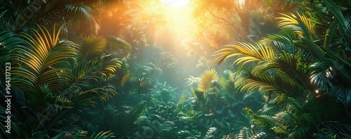 sunlight, sun, ray, leaf, foliage, green, tropical, jungle, forest, rainforest, palm, tree, branch, plant, nature, vegetation, vibrant, lush, dense, bright, shadow, dark, light, pattern, texture, exotic, paradise, growth, summer, beauty, natural, background, scenery, environment