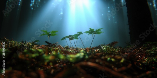 Sunlight filtering through trees forest nature serene environment ground view tranquility concept