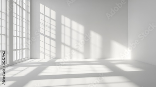 sunlight, shadow, minimalist, interior, white, room, three-dimensional, render, design, window, light, bright, dark, contrast, space, clean, simple, modern, elegant, aesthetic, architecture, home, house, wall, floor, ceiling, empty, blank, open, air, roomy, calm, serene, peaceful, quiet, still, muted, soft, sharp, geometric, line, shape, texture, surface, perspective, view, scene, atmosphere, ambience