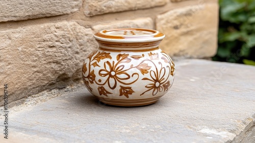 ancient, roman, jar, clay, stone, wall, sunlight, glaze, red, orange, calmness, nature, harmony, texture, craftsmanship, art, history, illumination, vegetation, warm, rustic, pottery, outdoors, organic, shadow, detail, scenic, vibrant, culture, ambience, heritage, design, aesthetic, foliage, soft, light, circular, shape, antique, vintage, tone, ceramic, still, life, elegant