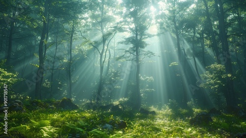 forest, sunlight, tree, morning, nature, greenery, calmness, mist, peaceful, outdoors, landscape, plant, wildlife, serenity, timberland, environment, ray, shadow, hiking, exploration, flora, fauna, fresh air, ecosystem, beauty, scenic, natural, calm, vibrant, wilderness, rural, earthy, lush, forest floor, fern, atmosphere, quiet, reflections, growth, habitat, biodiversity, calmness, scenery, sun ray, generative, ai