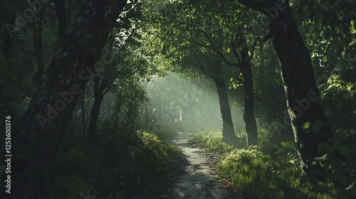forest, path, tree, sunlight, mist, wood, nature, landscape, light, green, foliage, trail, environment, natural, park, serene, tranquil, peaceful, journey, explore, adventure, shadow, scenic, wilderness, timberland, growth, vegetation, pathway, hike, walk, travel, scenery, rural, calm, quiet, beautiful, mysterious, dreamlike, soft, atmosphere