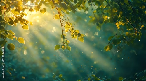 leaf, forest, sun, sunlight, nature, green, tree, tree branch, sunshine, light, ray, foliage, fresh, vibrant, natural, beautiful, summer, outdoors, morning, gold, spring, treetop, canopy, flora, landscape, peaceful, serenity, calm, calmness, background, photo, high-coloured, bright, glow, sparkle