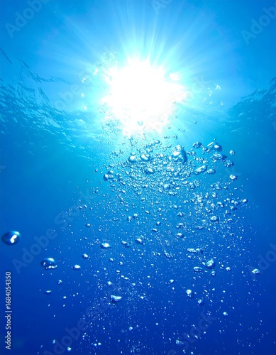 underwater, bubble, sunlight, blue, water, ocean, clear, bright, rising, sun, vibrant, depth, surface, aquatic, fresh, clean, aglow, serene, tranquil, nature, beautiful, high-coloured, sparkling, oceanic, fresh water, pure