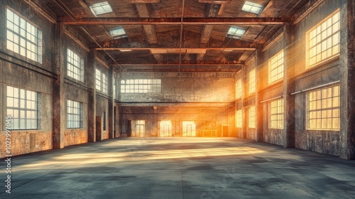 warehouse, interior, sunlight, industrial, space, rustic, empty, architecture, design, window, beam, shadow, texture, urban, atmosphere, old, building, light, decor, environment, daylight, vintage, roomy, brick, concrete, photo, structure, pattern, energy, modern, setting, room, scene, urbanism, ambience, contrast, corner, surface, depth, warm, tone, aesthetic, view, composition, art, inspired