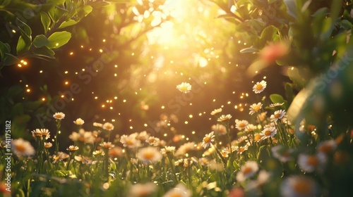 sunlight, meadow, wildflower, daisy, nature, bloom, garden, golden hour, peaceful, serenity, flora, flora, bokeh, spring, summer, insect, natural light, beauty, foliage, soft focus, landscape, tranquil, warm tones, environmental, scenery, floral, blossom, flower petals, freshness, organic, growth, park, evening light, sunshine, scenic, lush, bloom, relaxing, countryside, atmosphere, wilderness, cheerful
