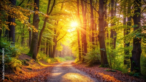 forest, sunlight, path, wood, tree, nature, landscape, autumn, fall, foliage, light, sun, trail, timberland, scenic, environment, outdoors, season, tranquil, peaceful, serene, vibrant, gold, bright, leaf, idylli, beauty, natural, park, pathway, paseo, perspective, depth, green, brown, yellow, orange, nobody, ground, forest floor, leaf, deciduous, tree trunk, sunbeam, sun ray, sunshine, warm, inviting