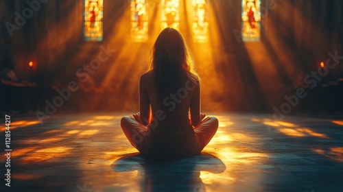 woman, praying, prayer, church, sunlit, sunbeam, sunlight, window, light, faith, spirituality, religious, worship, devotion, serene, peaceful, yoga, meditation, silhouette, sunset, health, lotus, illustration, meditating, body, exercise, relax, relaxation, pose, spiritual, nature, sun, vector, peace, sitting, beauty, zen, people, calm, fitness