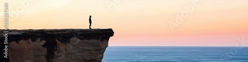 Sunlit Silhouette Adventure Minimalist Cliffside Dawn for Inspirational Marketing and Personal Growth-focused Outdoor Campaign Visuals