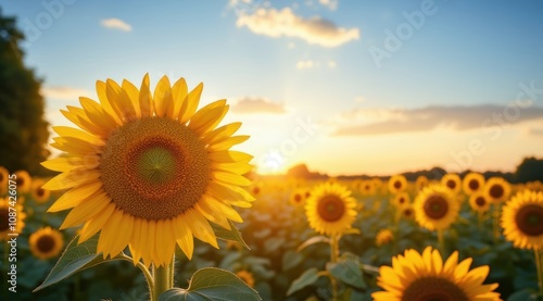 sunflower, sunset, flower, nature, outdoors, field, landscape, bright, gold, sky, summer, beautiful, agriculture, plant, colourful, rural, flora, growth, sunlight, horizon, bloom, botanical, scenic, kaleidoscope, evening, peaceful, sunny, green leaf, photo, natural beauty, environment, vivid colors, warm light, sonnenblumenfeld, skyline