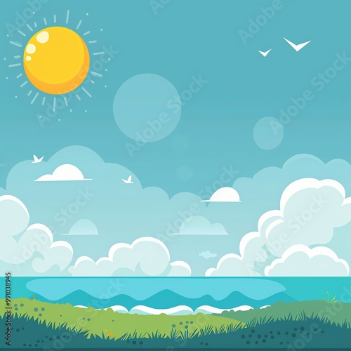 beautiful, sunny, day, beach, clear, sky, fluffy, cloud, calm, ocean, climate, field, design, scene, cool, artwork, weather, art, coast, bird, sea, abstract, warm, leaf, plant, sun, cloud, vector, illustration, summer, nature, landscape, rainbow, light, blue, cartoon, air, water, sunlight, sunrise, ray