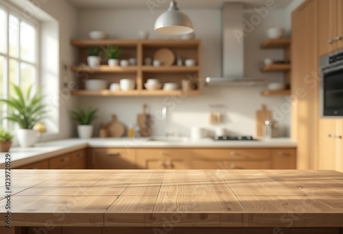 kitchen, island, countertop, wooden, table, sunlit, modern, design, cabinet, shelf, light, bright, airy, roomy, clean, minimalist, style, home, decor, interior, cooking, dining, breakfast, bar, furniture, wood, grain, texture, natural, warm, cosy, room, window, plant, sunlight, shadow, appliance, sink, faucet, plate, cup, utensil, storage, organised, functional, aesthetic, calm, peaceful