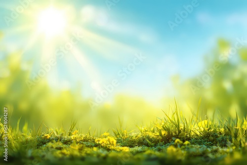 spring, grass, green, sun, nature, summer, bright, light, outdoors, landscape, meadow, sunny, day, bloom, yellow, blur, pastel, scenic, high-coloured, clear, atmosphere, peaceful, calm, tranquil, background, wallpaper, poster, print, decoration, digital artwork, illustration, photo, image, picture, visual, graphic design, design, abstract