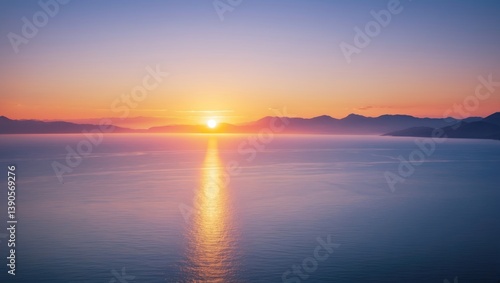 Sunrise above the ocean. Panorama