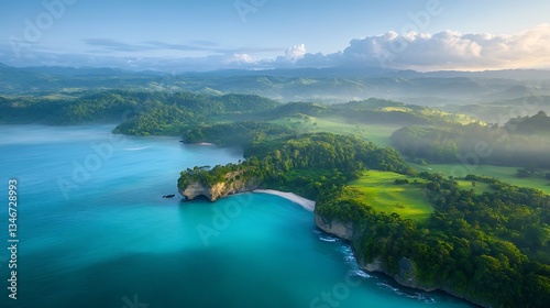 coast, cliff, ocean, sunrise, beach, tropical, paradise, landscape, aerial, drone, view, morning, sun, sky, cloud, nature, scenery, sea, water, green, hill, coastline, island, bay, blue, turquoise, calm, peaceful, serene, beautiful, travel, vacation, holiday, explore, adventure, photo, image, natural beauty, aerial photography, summer getaway, ocean view