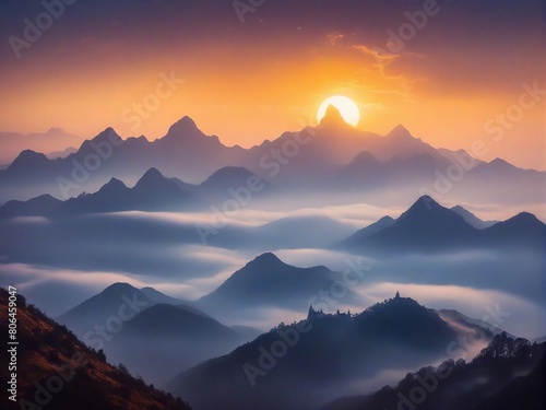 background, texture, decoration, pattern, abstraction, art, creativity, design, wallpaper, concept, style, poster, imagination, mountain, landscape, nature, sunset, sky, sunrise, mountain, fog, cloud, cloud, sun, snow, peak, morning, view, hill, mist, scenery, dawn, winter, forest, high, blue, horizon, light