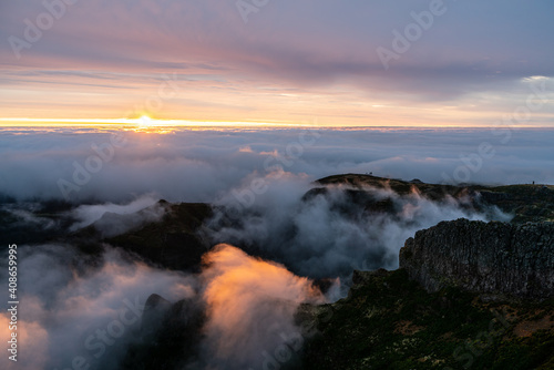 Sunrise on the mountain peak Pico do Arieiro of Madeira Island