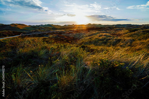 sun, illuminated, view, panoramic, scenic, foliage, through, evening, boardwalk, travel, coast, background, grass, beautiful, bush, path, showing, plant, leaf, horizon, glow, gold, dune, coastal, rolling, vegetation, green, dense, concept, vacation, summer, sunset, paseo, bridge, touristic, wooden, picturesque, sunrise, beauty, adventure, recreation, destination, nobody, nature, preserved, landscape