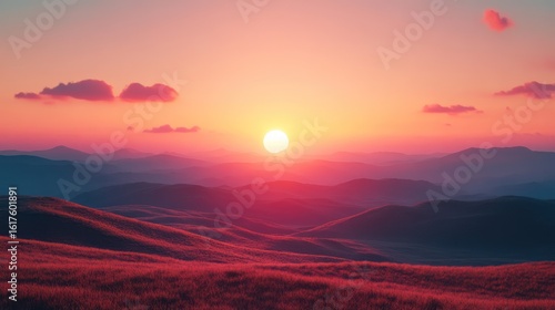Sunrise over rolling hills. Mountain landscape. Possible stock photo