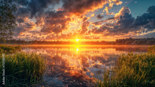 sunrise, reflections, tranquil, lake, nature, morning, cloud, sunlight, water, landscape, serene, dawn, golden hour, scenic, beauty, peaceful, sky, mist, warm light, glowing, reed, grass, waterscape, calm, idylli, picturesque, radiance, vibrant, mirror, clear sky, horizon, waterfront, natural, daybreak, light rays, wilderness, haze, early morning, calmness, waterside, sunburst, awakening, new day, ecosystem, habitat
