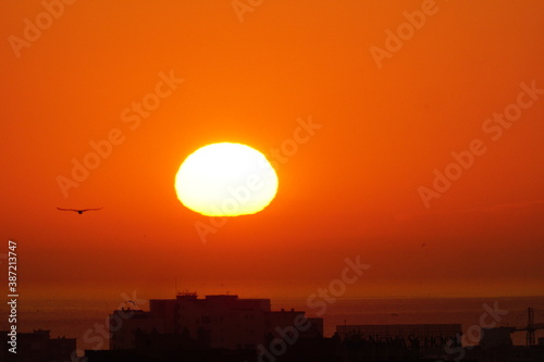 morning, sea, bird, sun, sunset, sky, orange, sunrise, cloud, red, city, cloud, silhouette, nature, landscape, dusk, evening, skyline, horizon, beautiful, night, building, yellow, urban, summer, view, light