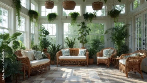 plant, wicker, furniture, interior, sunlight, cosy, relaxing, greenery, rustic, design, home, decor, stylish, botanical, natural, light, roomy, calm, tranquil, warm, patio, indoor, elegant, sophisticated, modern, classic, geometric, patterned, floor, potted, hanging, basket, rattan, soft, white, brown, beige, textile, room, living, area, space