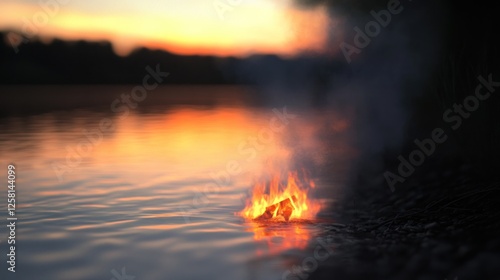 balefire, sunset, river, water, fire, flames, nature, landscape, evening, smoke, peaceful, tranquil, serenity, calm, relaxing, romantic, wilderness, adventure, travel, summer, night, dusk, dawn, light, glow, burning, ember, wood, scenic, beautiful, picturesque, background, image, photo, scene, hot, orange, dark
