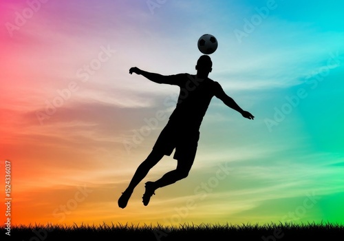 Sunset Football Silhouette: Head-Ball Mastery - A dynamic silhouette of a football player showcasing skill, athleticism, freedom, sunset, and victory. Captures the essence of the beautiful game