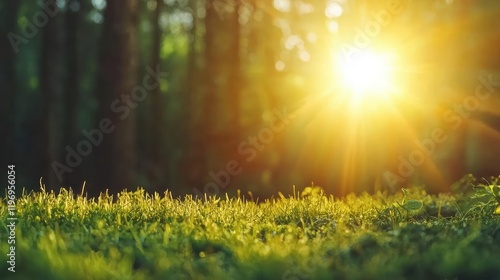sunset, forest, grass, nature, background, peaceful, sun, tree, green, light, landscape, summer, wood, calmness, serenity, calm, environment, scenic, beauty, vibrant, gold, ray, bright, spring, day, horizon, earth, ecology, image, photo, picture, view, scene, natural, flora, plant, foliage, wilderness, park