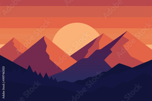 sunset, landscape, mountain, mountain, sky, nature, vector, sun, sunrise, illustration, desert, orange, travel, cloud, silhouette, hill, cloud, dawn, horizon, sea, evening, sunlight, river, peak, dusk