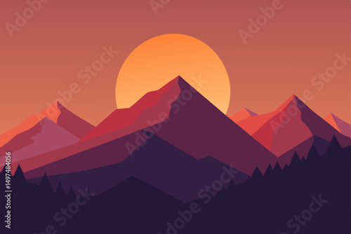 sunset, landscape, mountain, mountain, sky, nature, sun, sunrise, vector, illustration, egypt, travel, desert, evening, orange, silhouette, pyramid, cloud, summer, light, morning, cloud, beautiful, peak, horizon